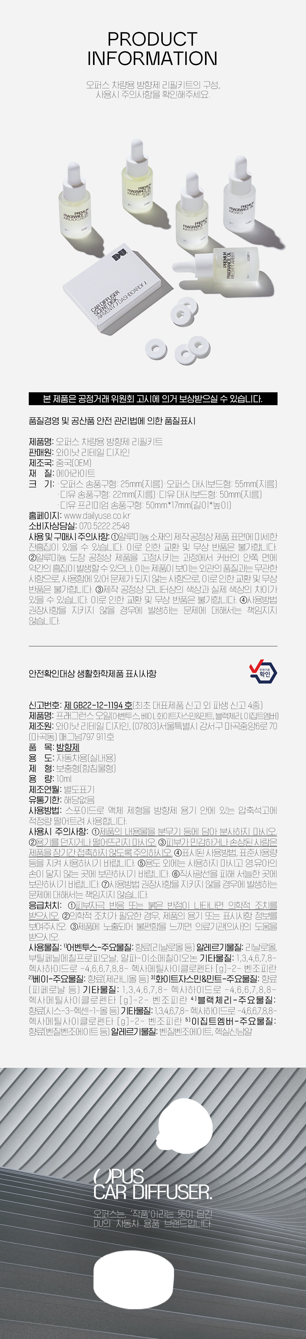 오퍼스 차량용 방향제 리필키트